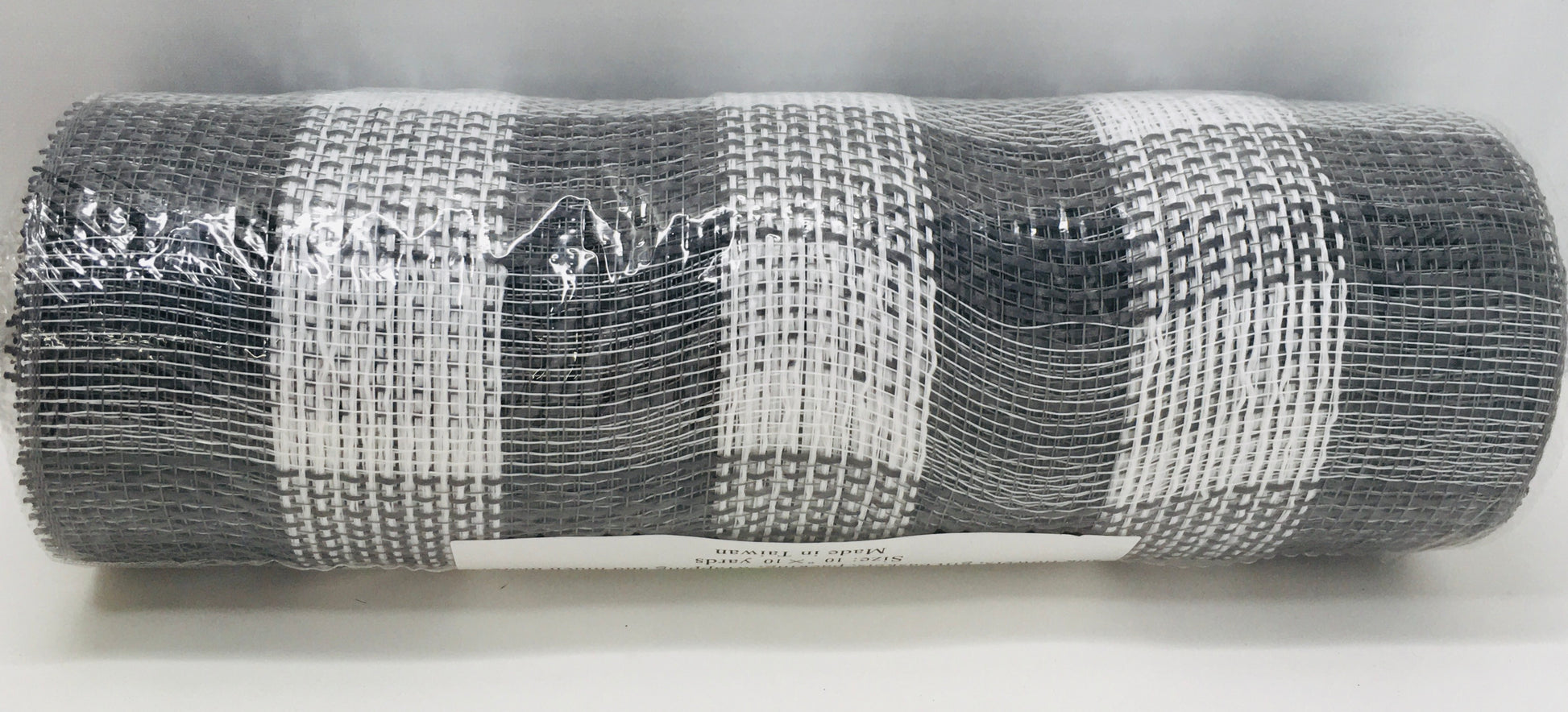 10”x10 Yards - Gray and White Fabric Plaid Mesh