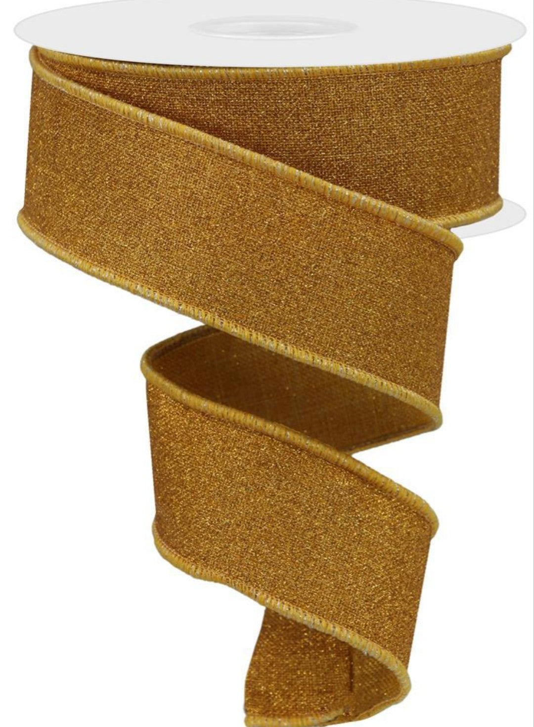 10 Yards - 1.5” Wired Mustard Yellow Glitter Fall Ribbon