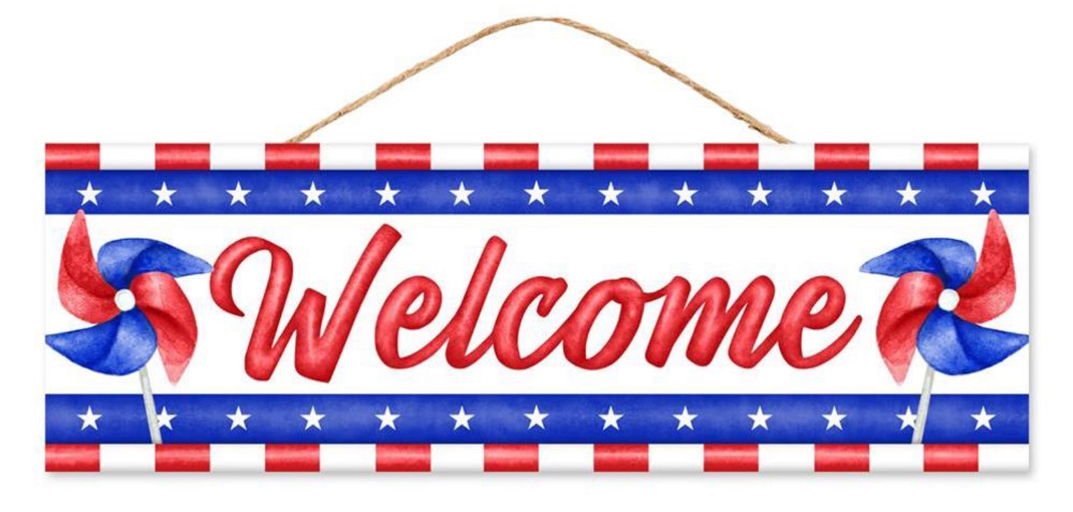 15”x5” Patriotic Pinwheel Welcome Wreath Sign