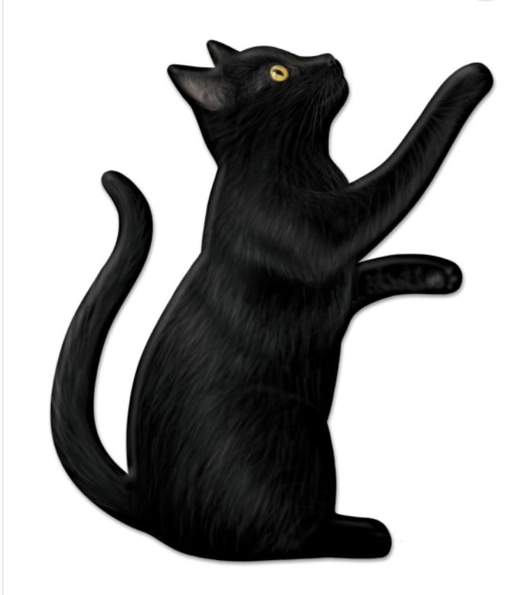 12”x10.5” Metal Embossed Pawing Black Cat Wreath Sign