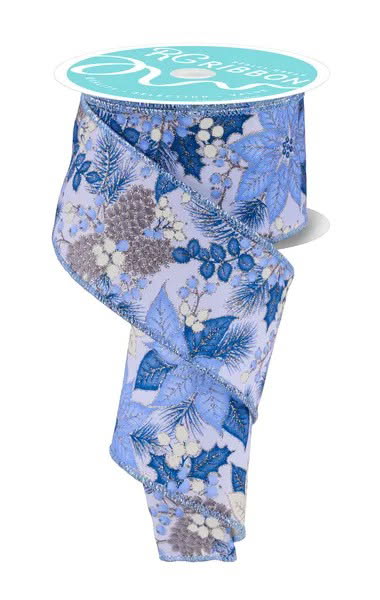 Wired Blue Poinsettia Christmas with Gold Glitter Accent Ribbon -2.5”x10 Yards