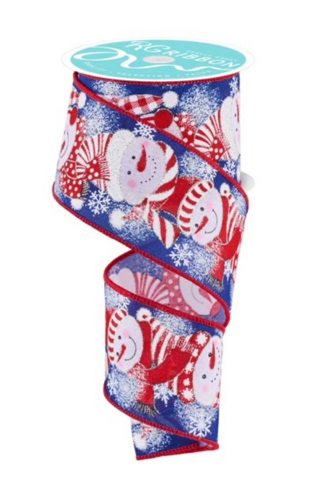 Wired Snowman on Navy Background Glitter Accent Ribbon- 2.5”x10 Yards